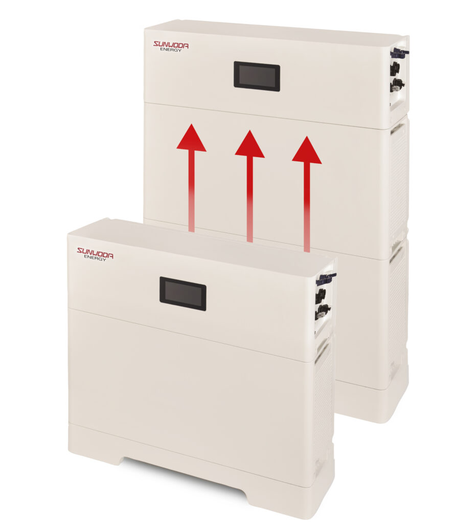 A lakossági akkumulátorrendszerünk (5–20 kWh) modulárisan bővíthető, így az autonóm üzemidő és a terhelés mértéke szabadon alakítható. A nagy modularitásnak köszönhetően akár 60 kWh kapacitás is elérhető egyetlen inverterrel – különösen előnyös hálózatról leválasztott telepítéseknél.