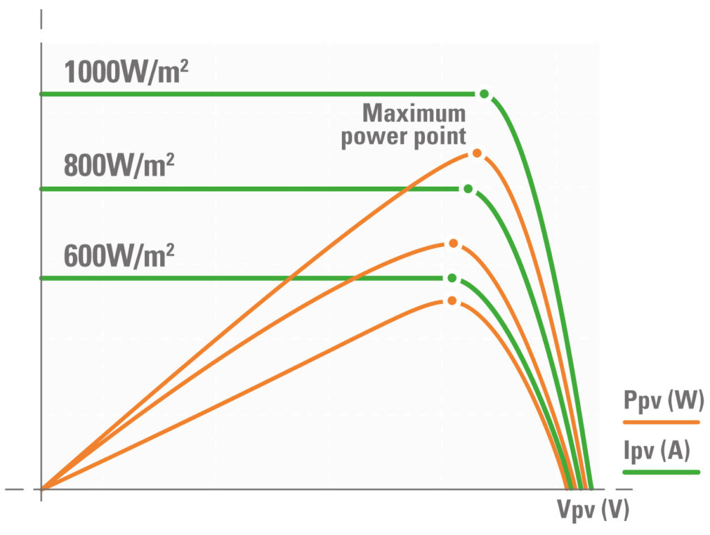 A fotovoltaikus panelek által befogadott napenergia több tényezőtől függ, például a földrajzi szélességtől, tájolástól, dőlésszögtől, besugárzástól, árnyéktól, hőmérséklettől stb. Ezért minden pillanatban meg kell határozni a fotovoltaikus generátor V–I görbéjén azt a pontot, ahol az inverter a maximális teljesítményen tud működni – ezt biztosítja az integrált MPPT (Maximum Power Point Tracker) szabályozás.